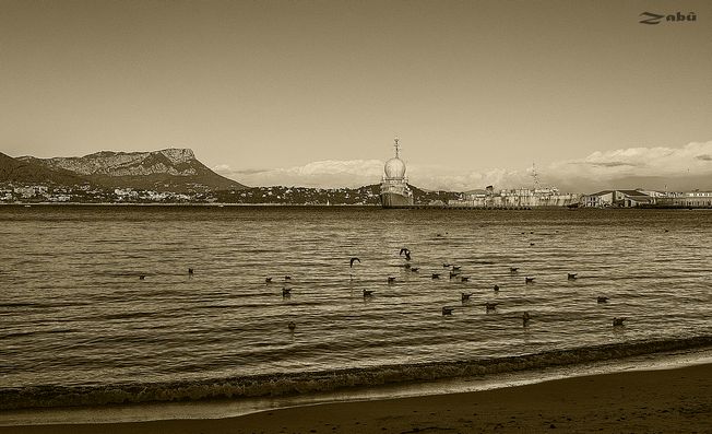 Original-noir et blanc sépia vue sur la rade de toulon